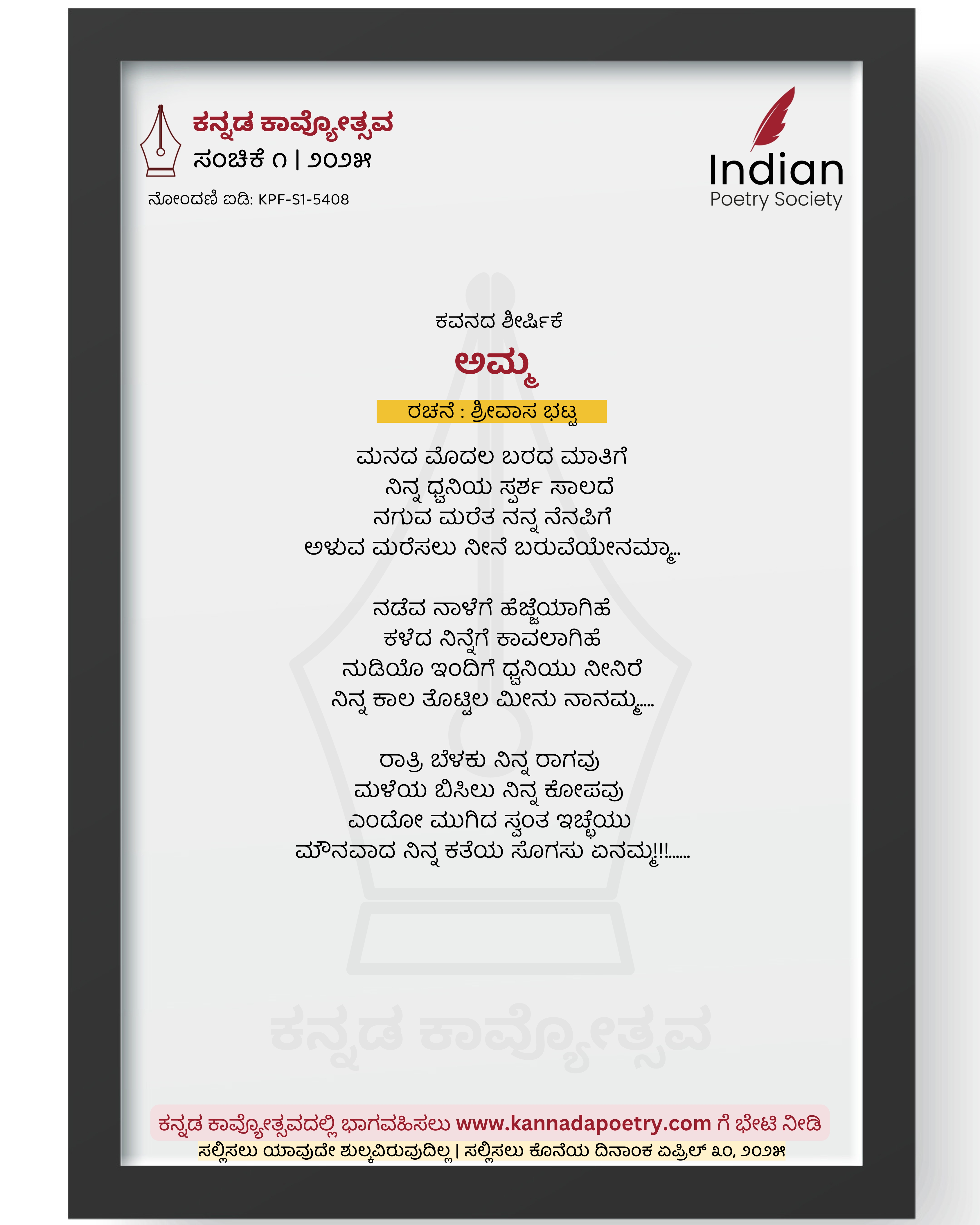 ಒಲವನ್ನು ನೀಡಿದವಳು ಮುನಿಸಲ್ಲೇ ಮುಗುಳ್ನಕ್ಕವಳು ನೋವಿಗೆ ಸ್ಪಂದಿಸಿದವಳು ನನ್ನೊಳಿತ ಬಯಸಿದವಳು ಒಮ್ಮೆಲೇ ಮಾಯವಾದಳು!!!! ಹಸೆ ಮನೆಯ ಎರಿದಳು ಹೊಸ ಮನೆಗೆ ಹೋದಳು! ಇವಳಿಲ್ಲದ ಮನೆಯಾಗಿದೆ, ಹೂವಿಲ್ಲದ ಪೂಜೆಯಂತೆ! ತಾಯಿಲ್ಲದ ತಬ್ಬಲಿಯಂತೆ! ಇವಳಿನ್ನು ತವರು ಮನೆಗೆ ಅಥಿತಿಯಂತೆ!!!! ಮತ್ತೆ ಮತ್ತೆ ನೆನಪಾಗುವಿಯಲ್ಲೆ